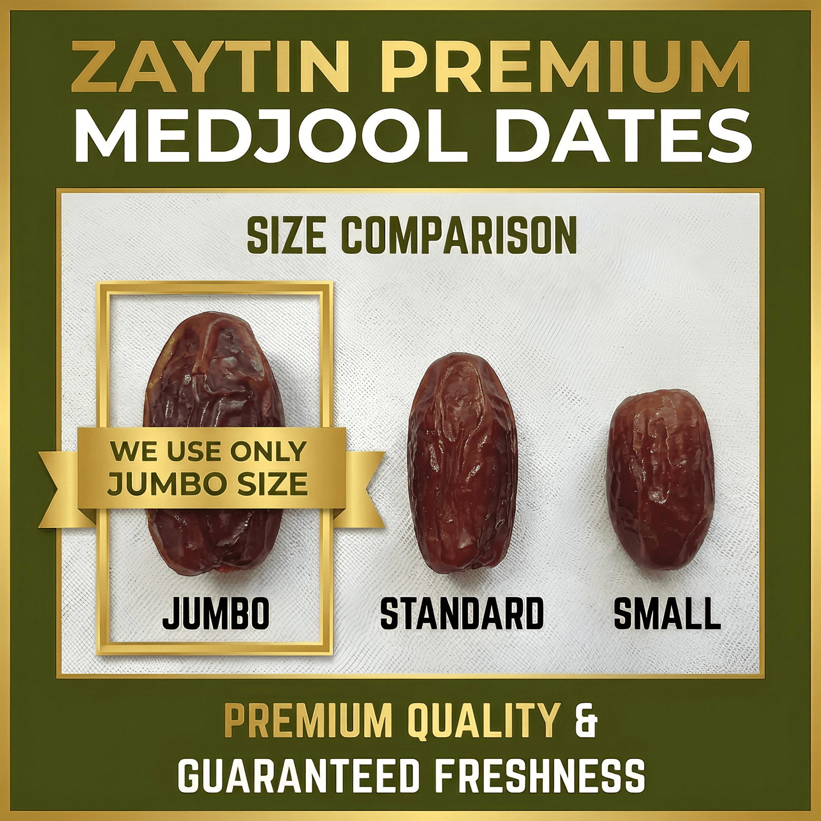 ZAYTIN Medjool Jumbo Dates are carefully selected premium dates known for their large size, soft texture, and naturally sweet flavour. Sourced from trusted origins, these dates are processed with a strict quality-first approach.